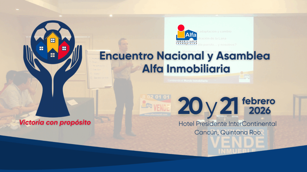 Invitamos a todas las oficinas Alfa Inmobiliaria a ser parte de este encuentro único. Tu presencia fortalece la Red, impulsa decisiones estratégicas y contribuye a construir un 2026 lleno de oportunidades. Este febrero, reunámonos para celebrar nuestra victoria con propósito y seguir transformando el mundo inmobiliario… juntos.
